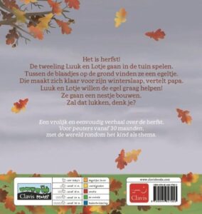 Het is herfst! De tweeling Luuk en Lotje gaan in de tuin spelen. Tussen de blaadjes op de grond vinden ze een egeltje. Die maakt zich klaar voor zijn winterslaap, vertelt papa. Luuk en Lotje willen de egel graag helpen! Ze gaan een nestje bouwen. Zal dat lukken, denk je?